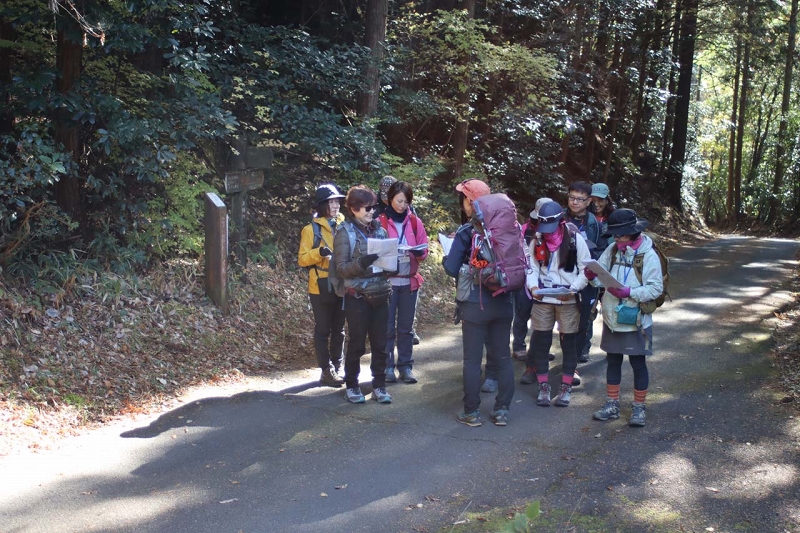 当日、集合場所の江文神社でヘルメットとハーネスを装着して、岩登りのゲレンデへ移動しました。参加者6名にスタッフ3名、少人数で贅沢な岩登り講習会でした。