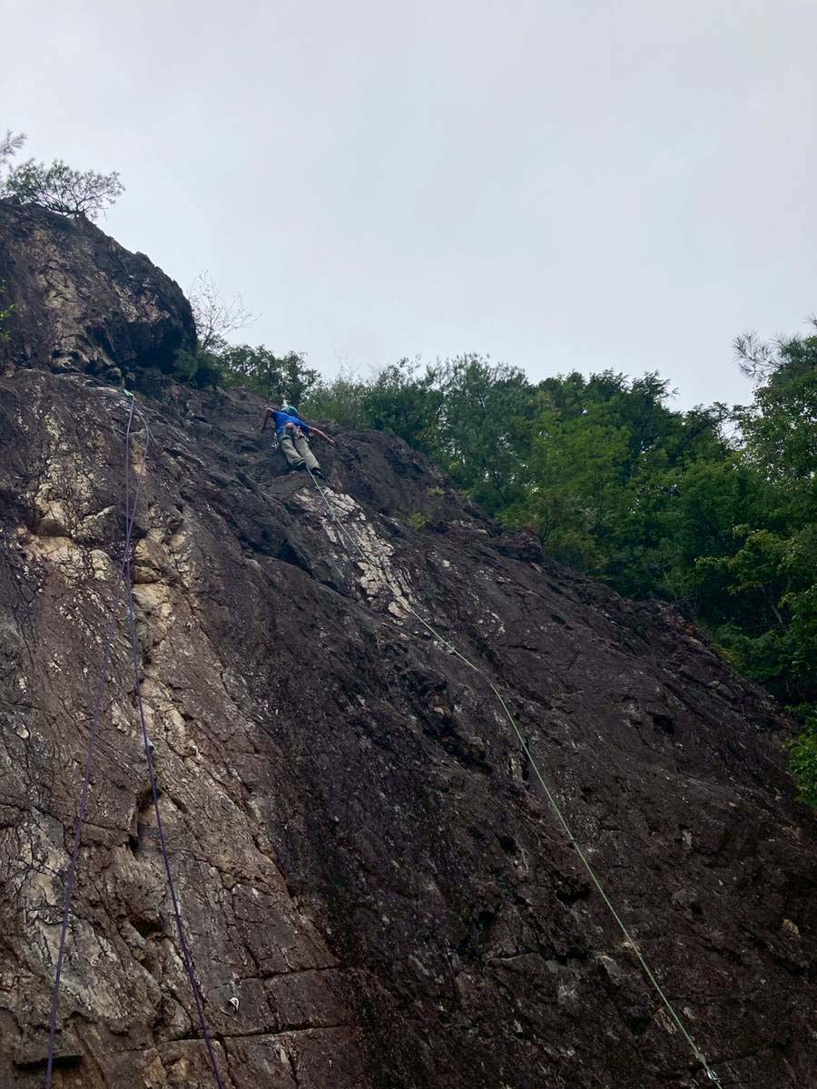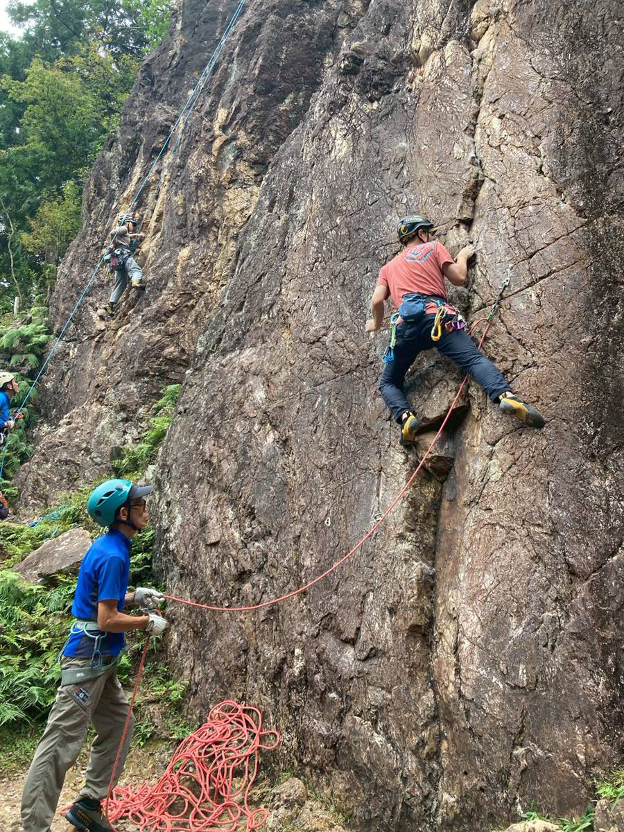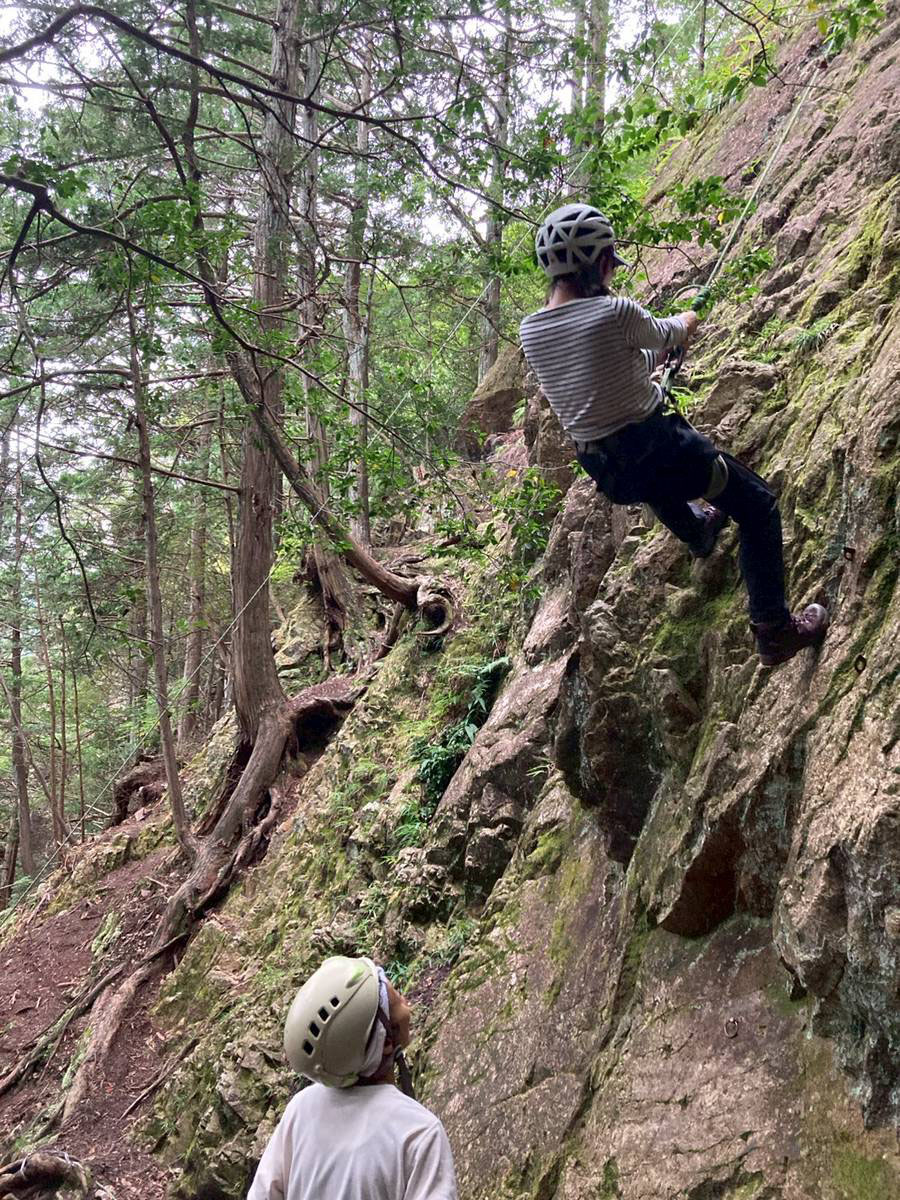 Y懸の頭から、ふね、MKと3つの岩場に挑戦させてもらいました。スタッフの魔法の言葉「ナイス!ナイス!ナイス!」の掛け声に、気持ち良く我を忘れて岩をよじ登りました。