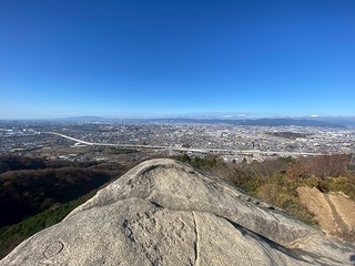 交野山山頂には観音岩という大岩が鎮座し、観音岩から北は比叡山・愛宕山・京都市街から交野市・枚方市一帯、遠く六甲山地や南はあべのハルカス等の大阪の高層ビル街の眺望を楽しむ。