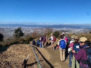 国見山山頂からは交野山とは少し違った角度から大阪北部・京都南部一帯の眺望を楽しみ、下山の途につく。国見山から夫婦岩を経て約1時間でJR津田駅に到着。今回は天候に恵まれ、空気も澄み切ってすばらしい眺望を堪能できた山旅でした。