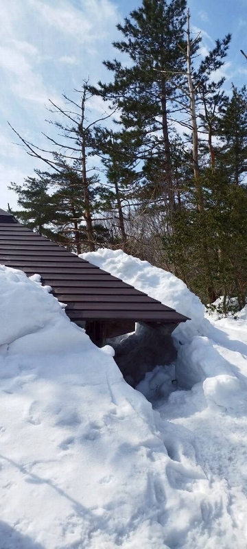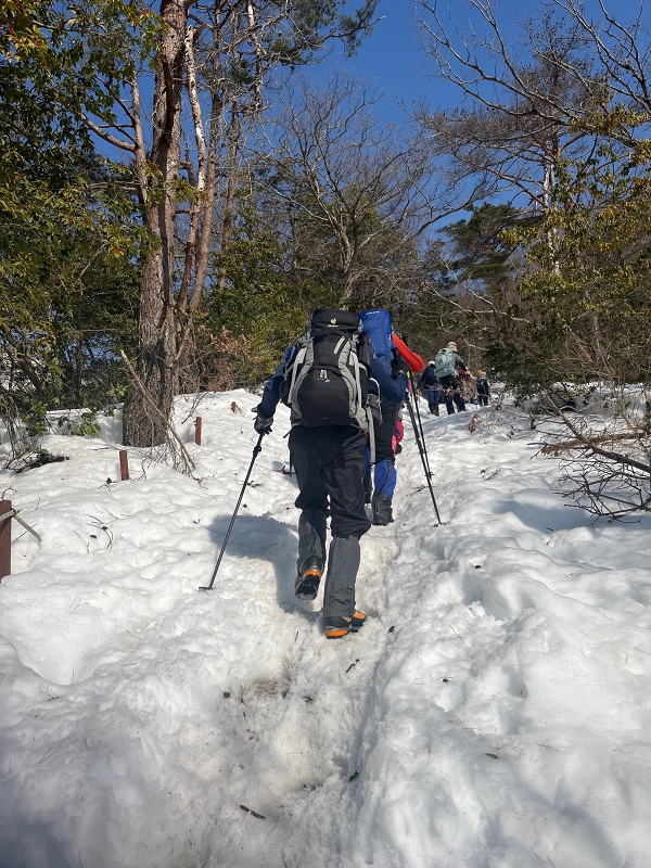下山は来た道を引き返し、マキノ高原温泉に戻る。今回は少しでもコースを外れると膝まですっぽりと雪に埋まる等、雪の中の行軍に悪戦苦闘したが天候に恵まれ、空気も清みわたった銀世界を堪能した山旅でした。