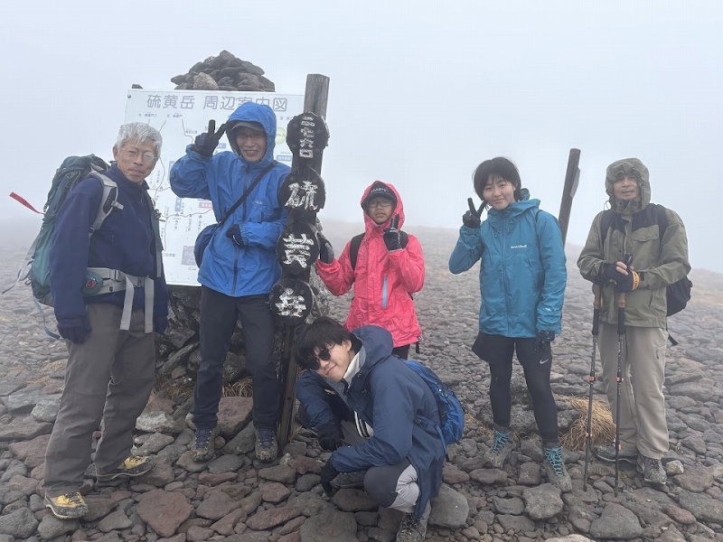 硫黄岳では強風・霧のため視界が利かない中での登山となりました。稜線に出る直前まで穏やかな森の中の登山だったのが森林限界を超えるやいなや、突然強風にさらされ面食らったようです。