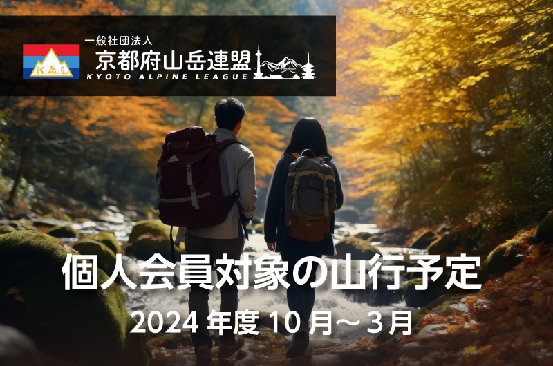 ① (⼀社)京都府⼭岳連盟の加盟会員及び、(⾮加盟の)⼀般登⼭者で、⼭岳保険に加⼊済であること